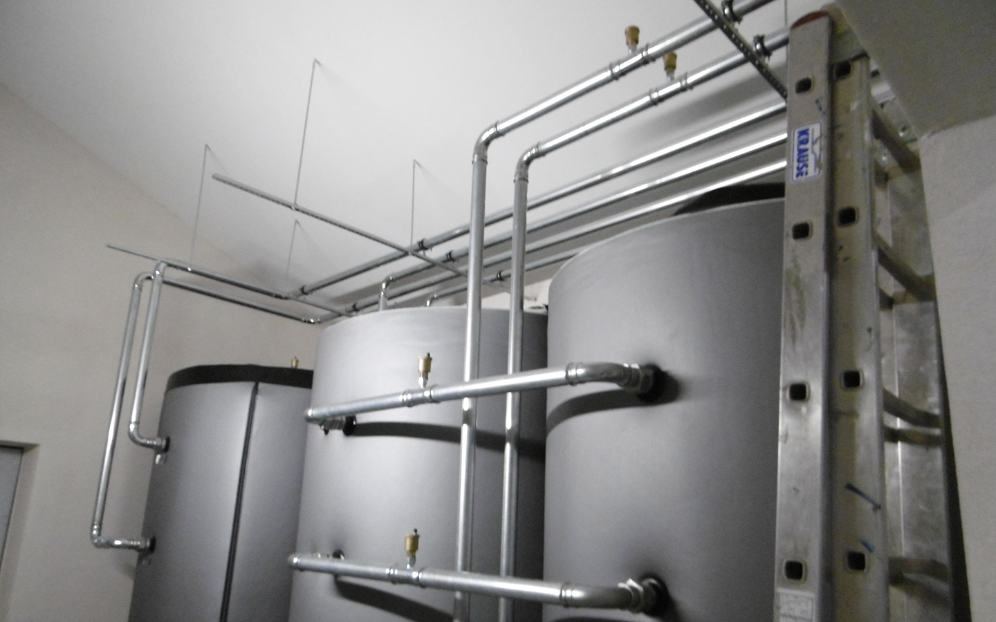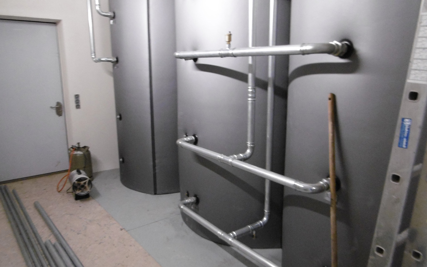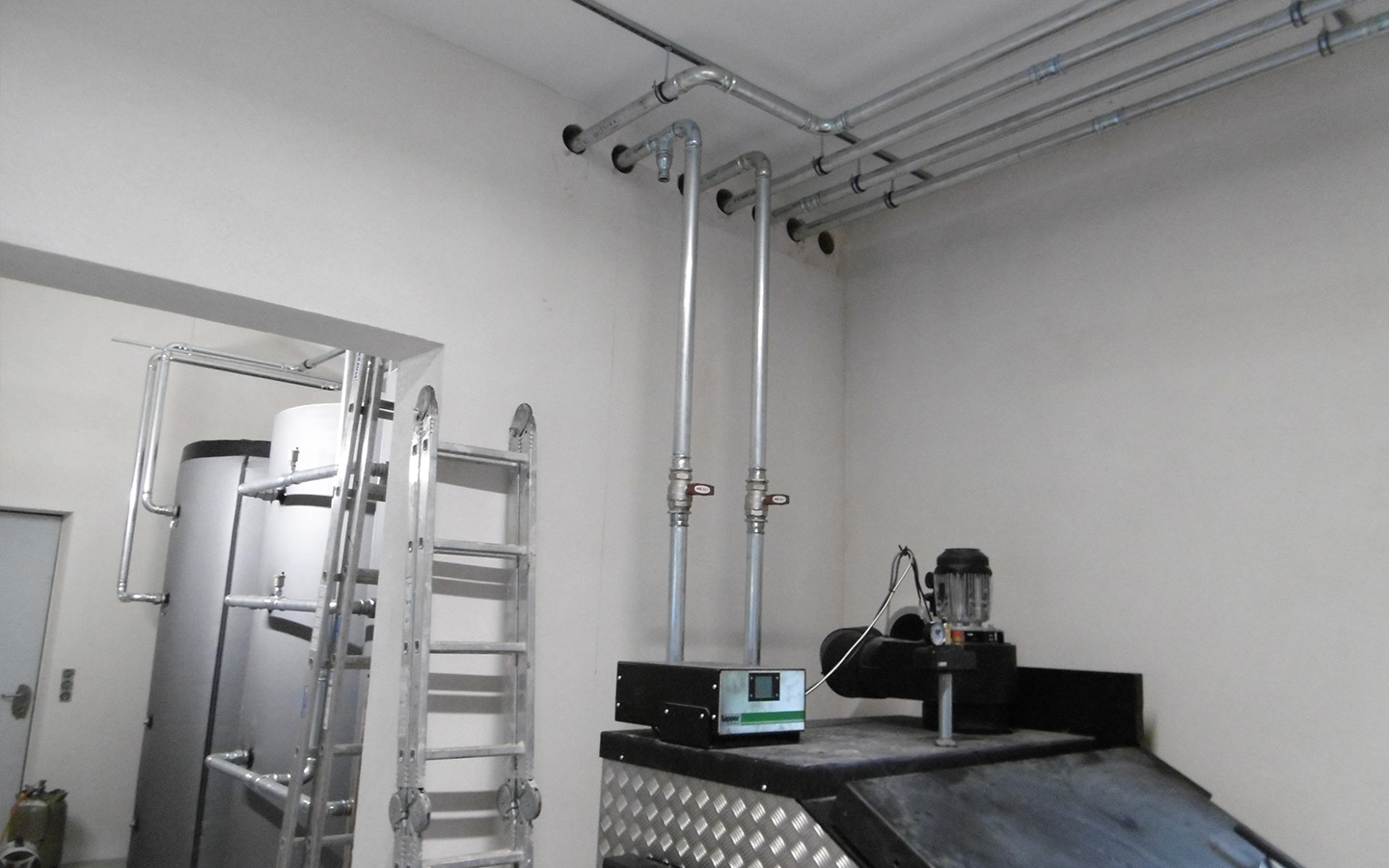 Wir haben einen 90 KW Holzofen installiert, der letztendlich 5 Einfamilienhäuser beheizt.